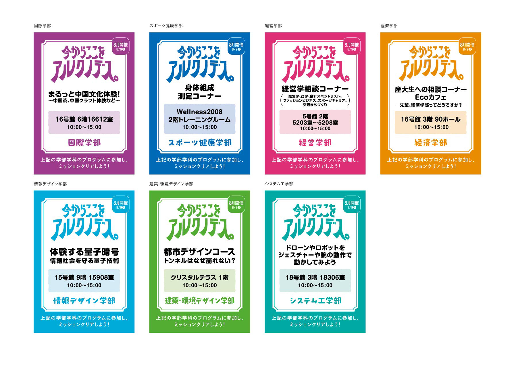 広いキャンパスを来場者にしっかり歩いてもらう目的で企画・デザイン、そしてキャラクターデザインを担当。