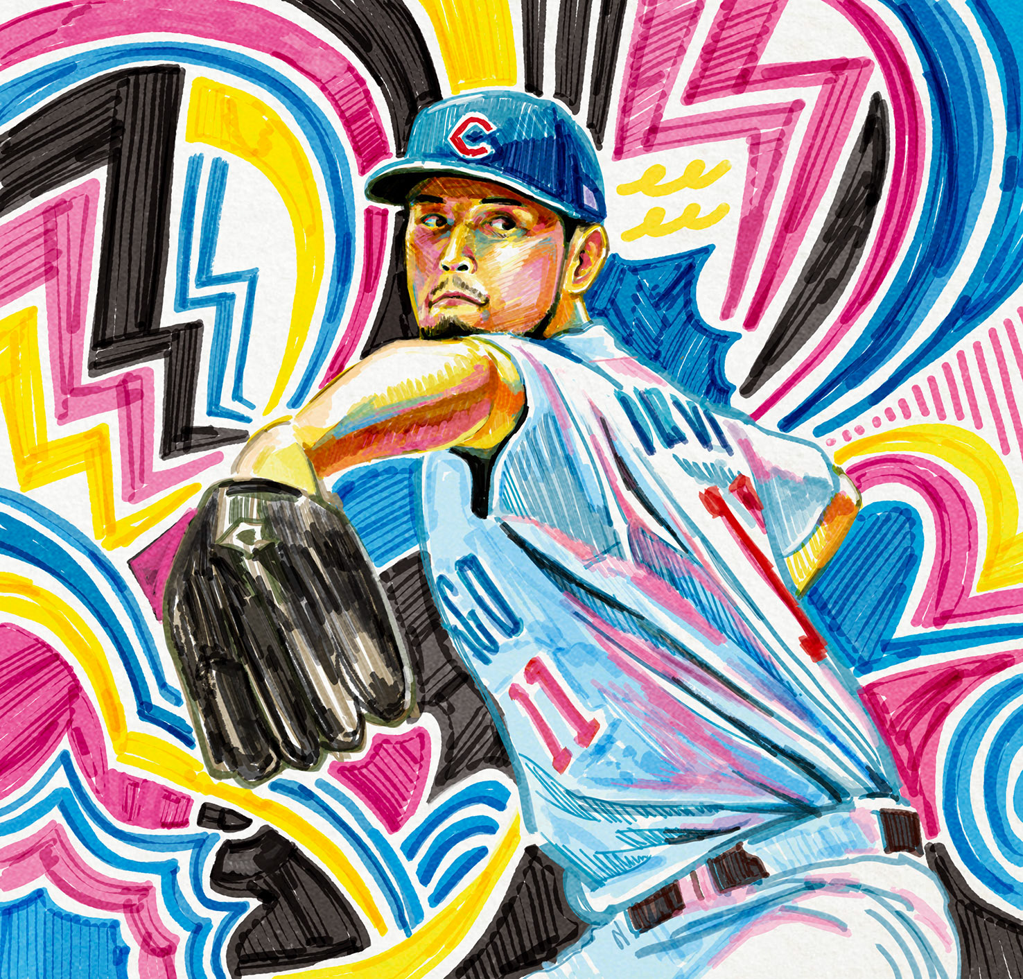 趣味で描いている選手のイラストです。